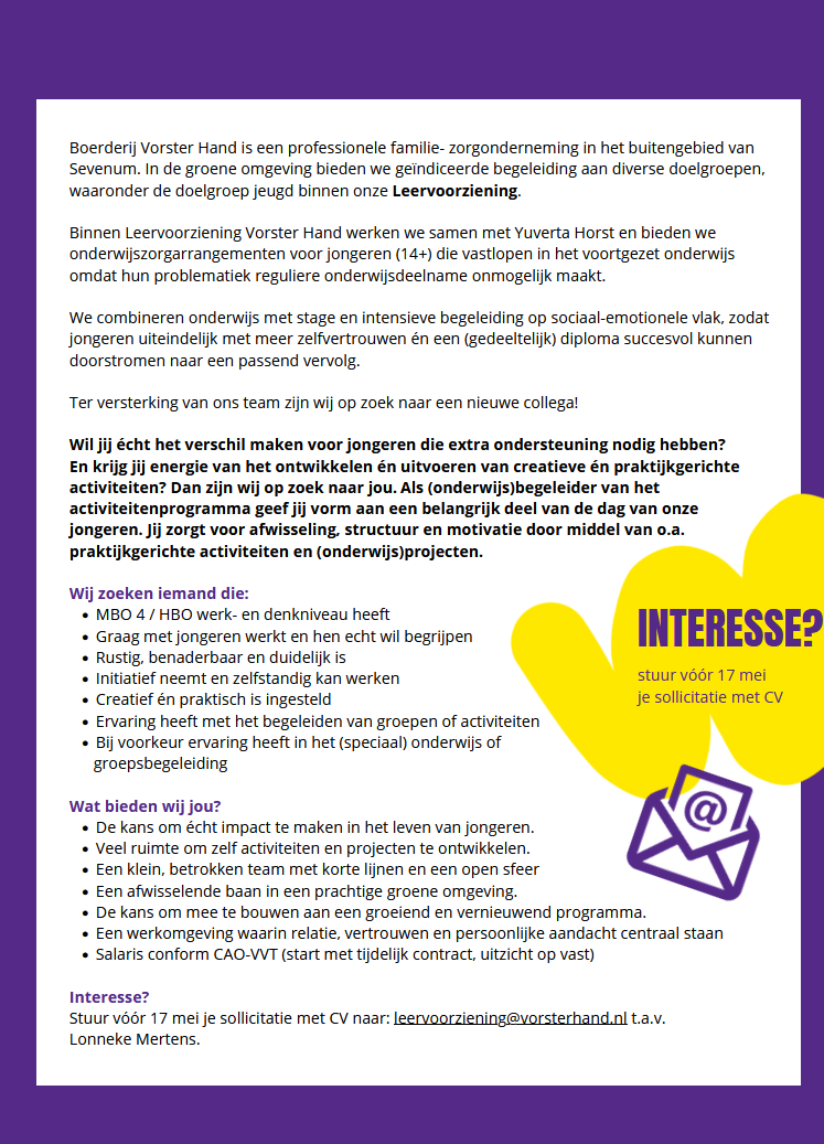 Voor onze Leervoorziening zijn wij op zoek!